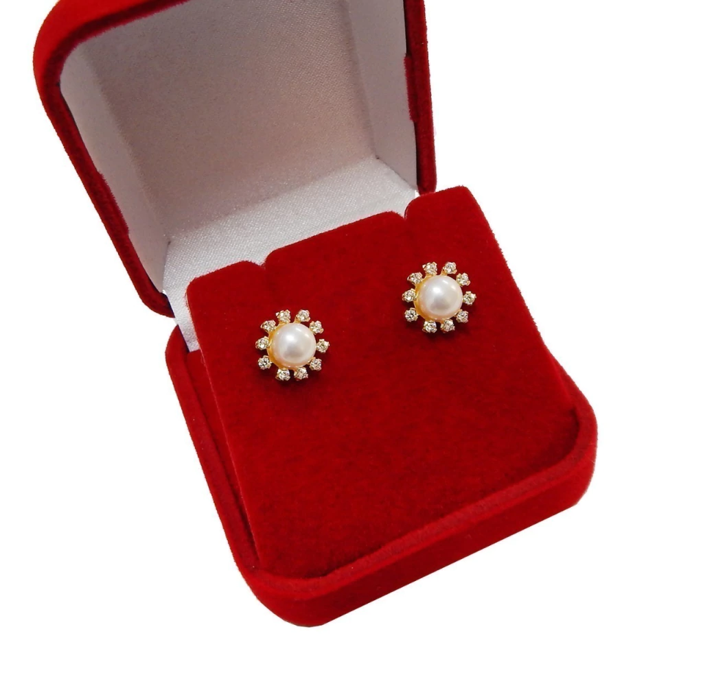 BRINCO EM OURO 18K PÉROLA NATURAL COM ZIRCÔNIAS