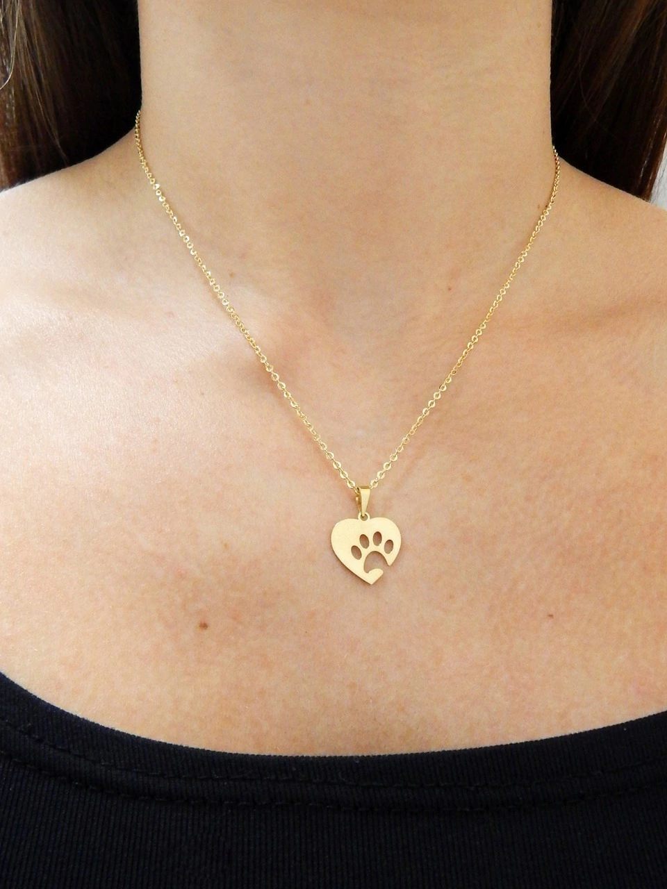 Pingente Coração Com Pata Patinha Cachorro Em Ouro 18k