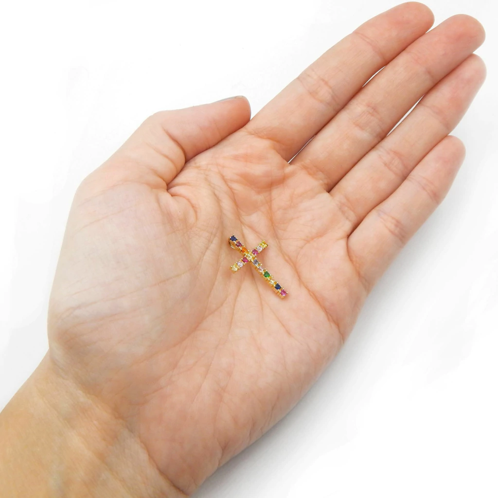 PINGENTE CRUZ ZIRCÔNIAS COLORIDAS EM OURO 18K