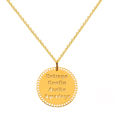 CORRENTE BAILARINA COM PINGENTE ENTREGO CONFIO ACEITO AGRADEÇO EM OURO 18K