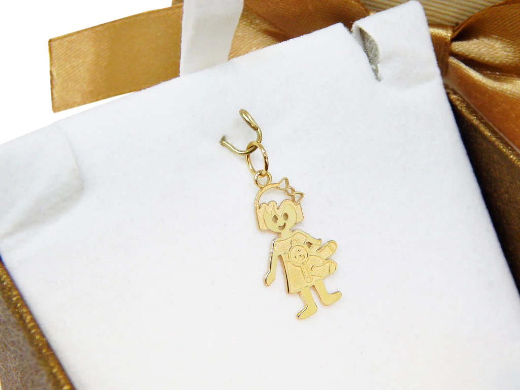 Pingente Menina Filha Com Ursinho Em Ouro 18k Grande