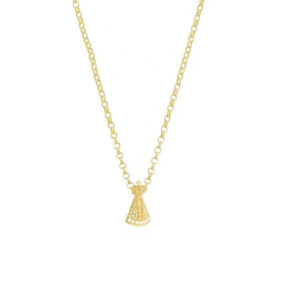 PINGENTE NOSSA SENHORA 12MM COM CORRENTE PORTUGUESA EM OURO 18K