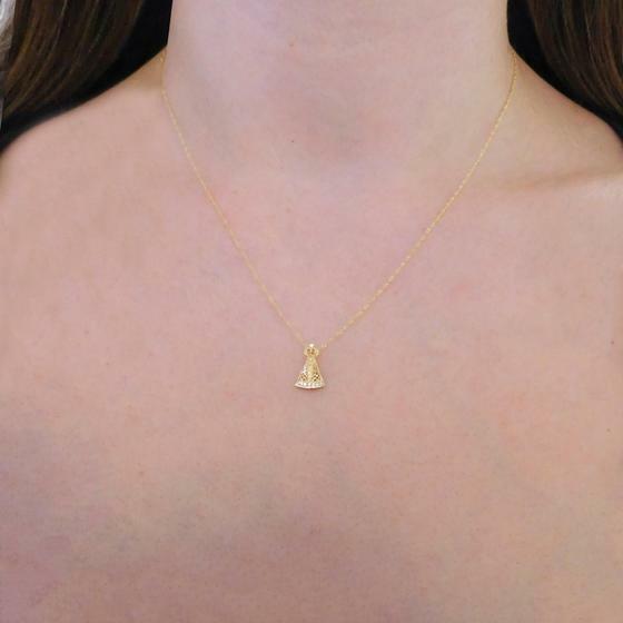 Pingente Nossa Senhora 12mm Zircônias Em Ouro 18k