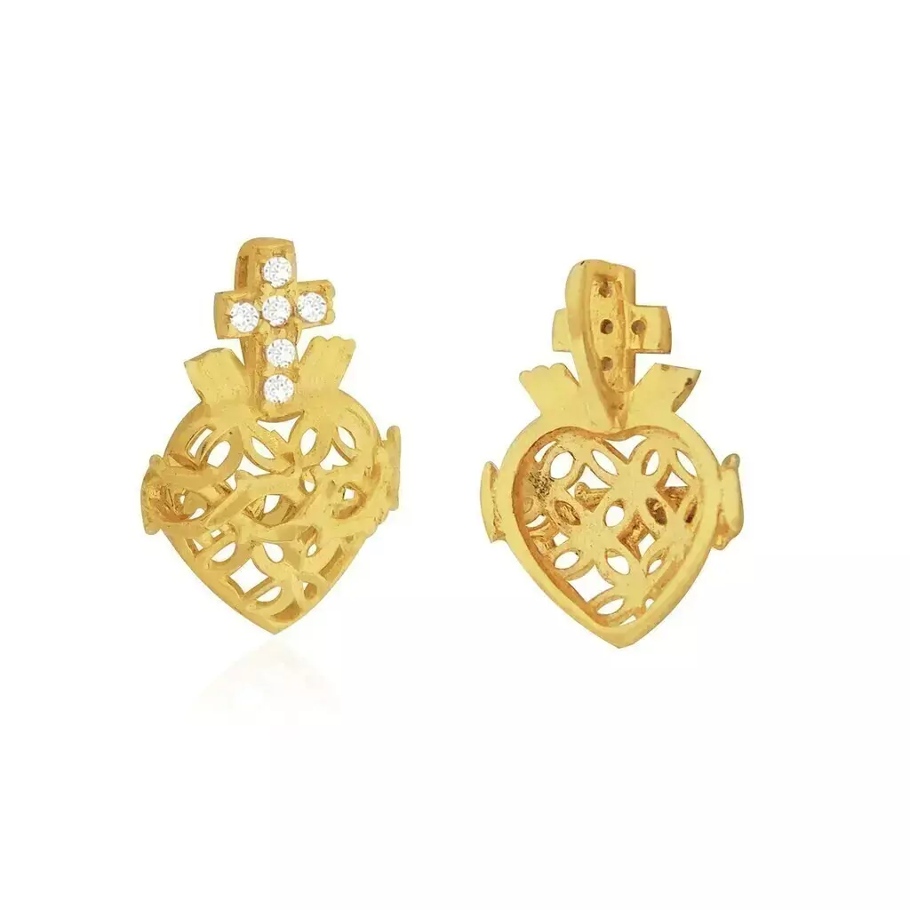 PINGENTE SAGRADO CORAÇÃO JESUS COM CORRENTE PORTUGUESA EM OURO 18K