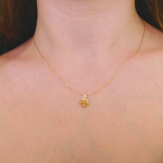 PINGENTE SAGRADO CORAÇÃO JESUS COM CORRENTE CART ER EM OURO 18K