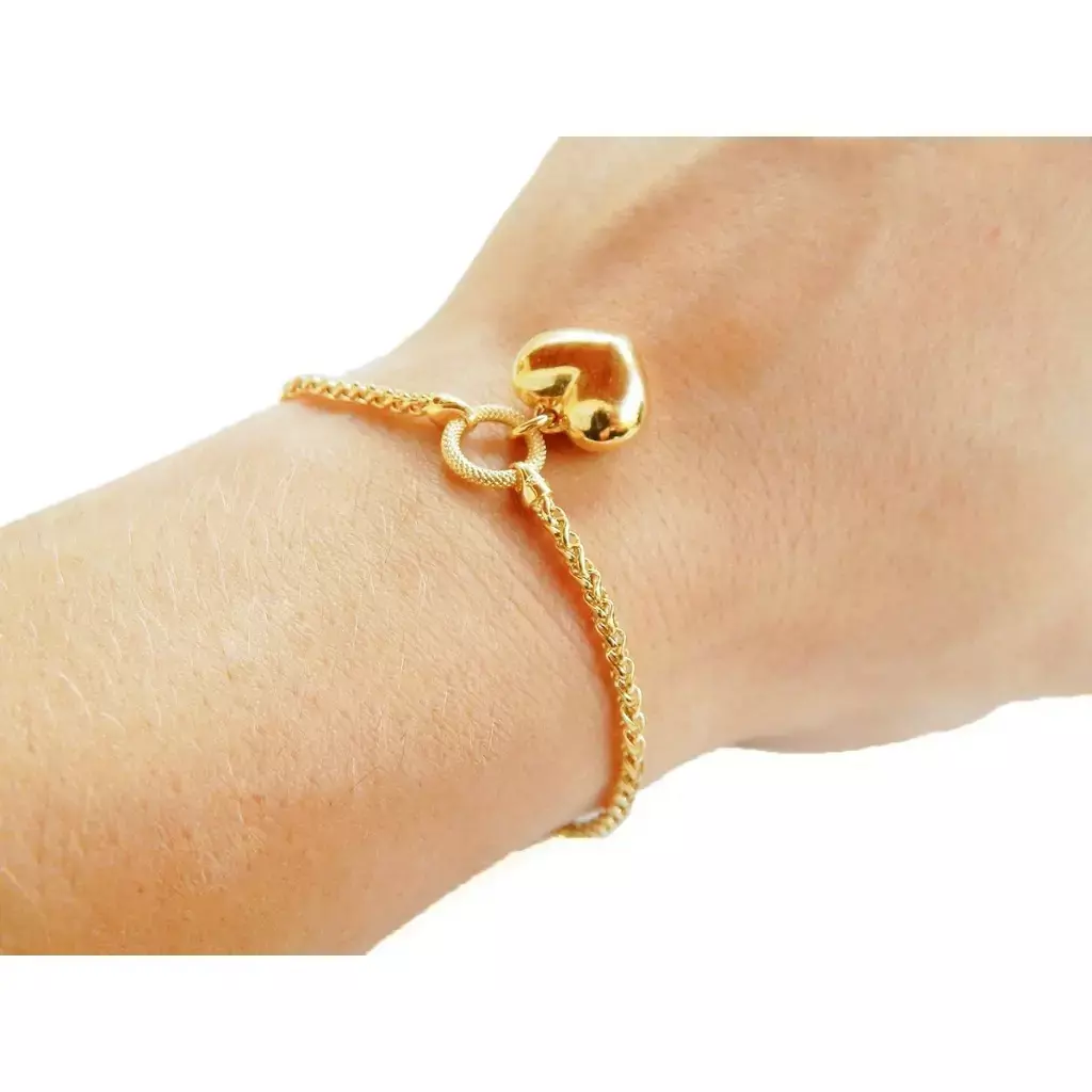 PULSEIRA PALMEIRA COM PINGENTE CORAÇÃO EM OURO 18K